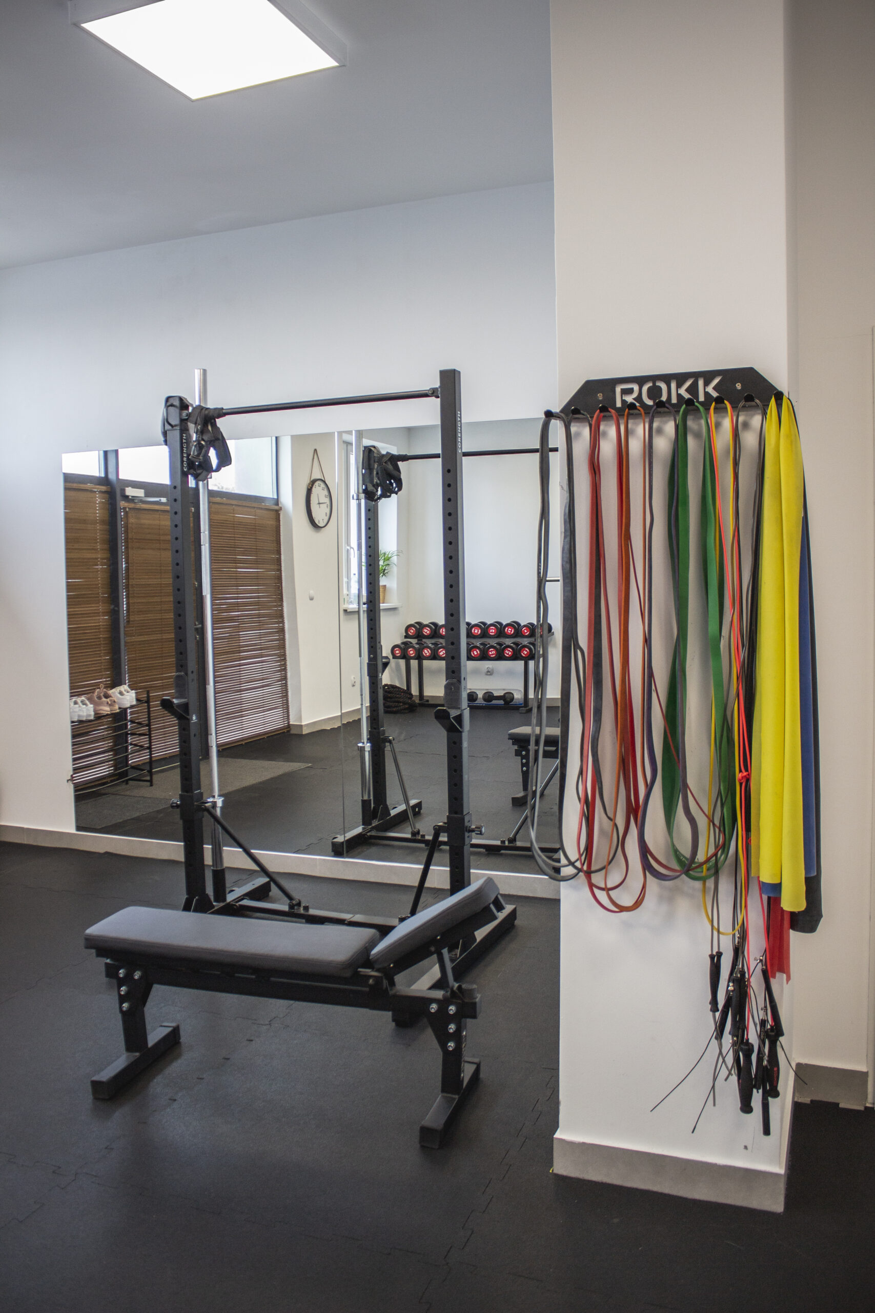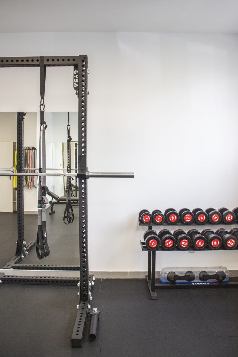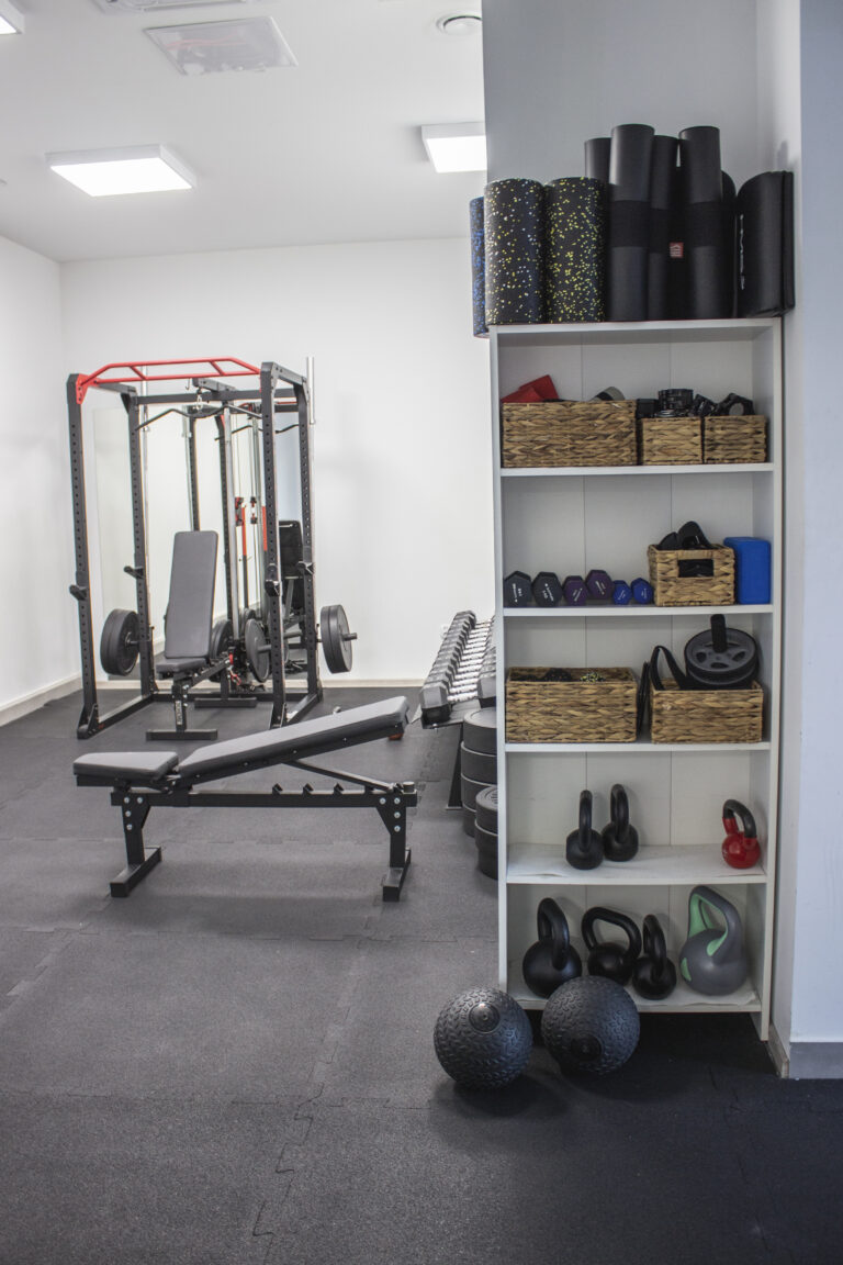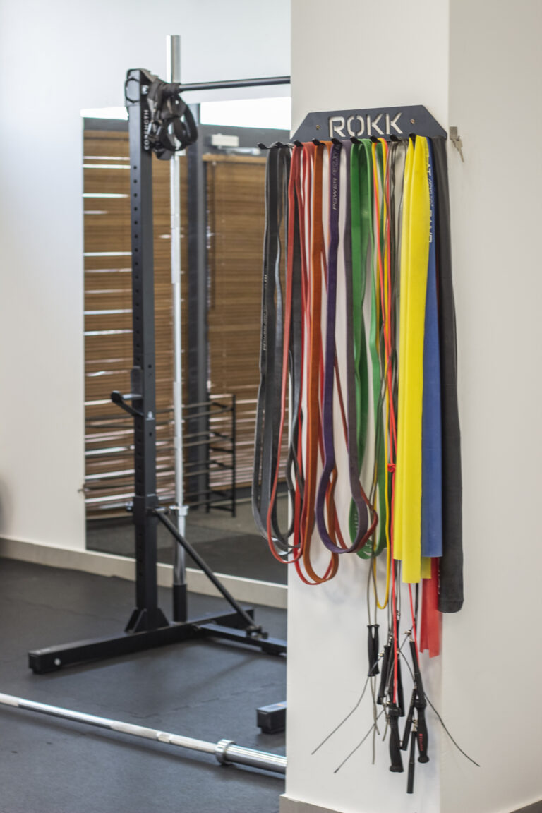 Wewnątrz studia znajduje się kompletny sprzęt niezbędny do treningu. Bramy treningowe z kilkoma stanowiskami pozwalają na różnorodne ćwiczenia. Dostępne są zestawy hantli, obciążenia, taśmy, piłki, piłki lekarskie, trx, skrzynie, maty i wiele innych.