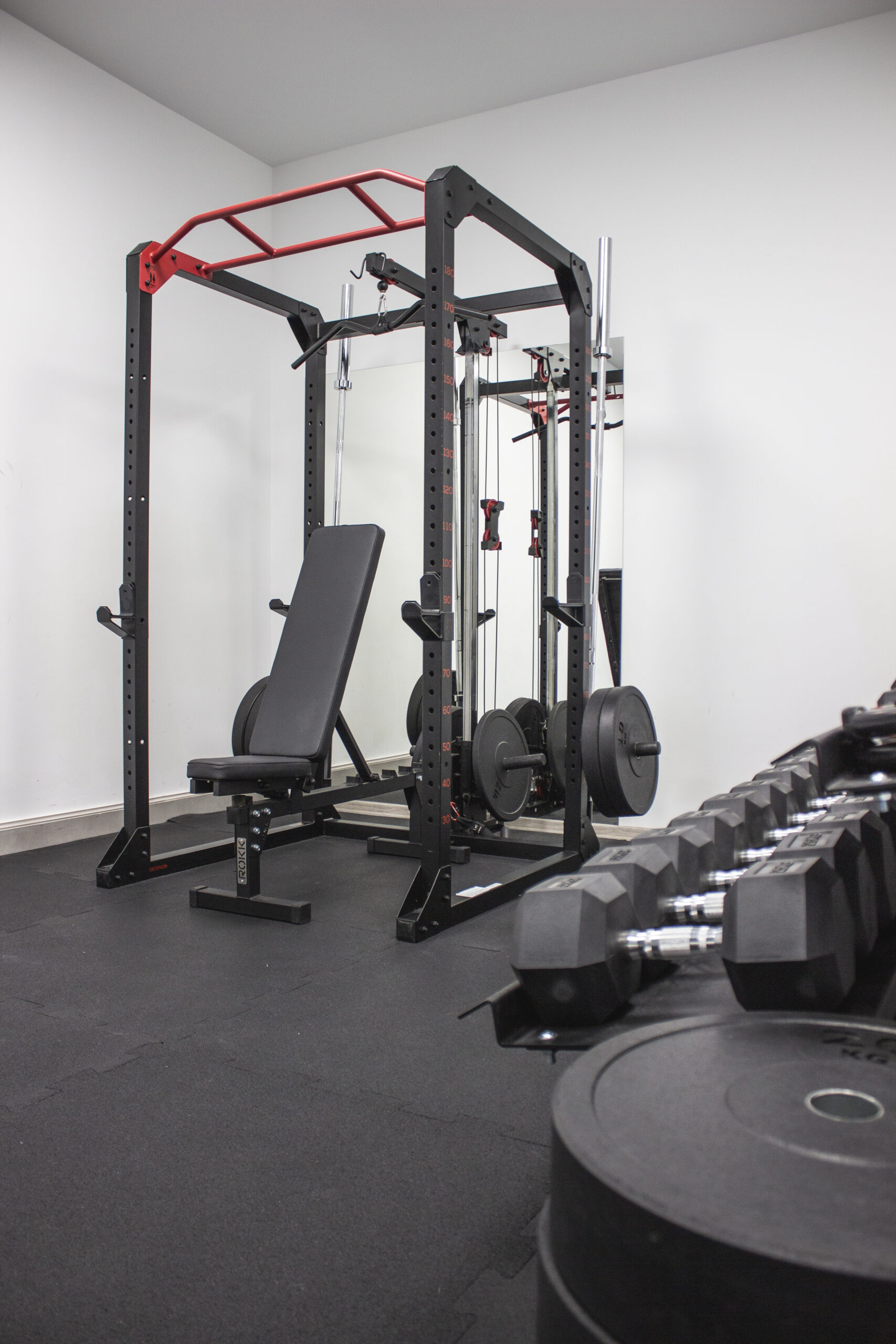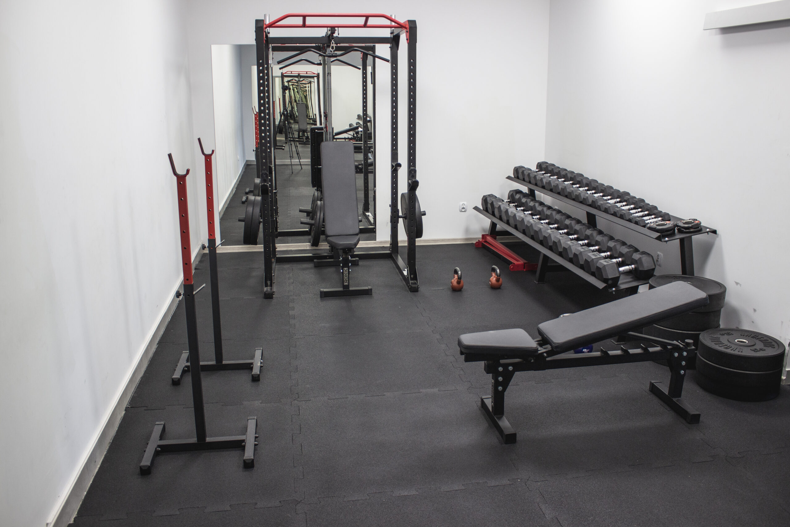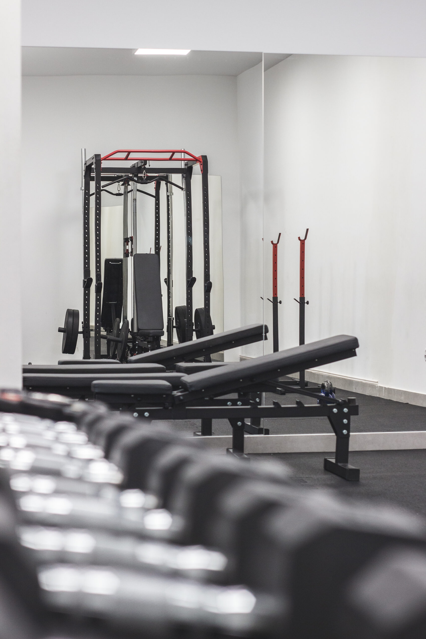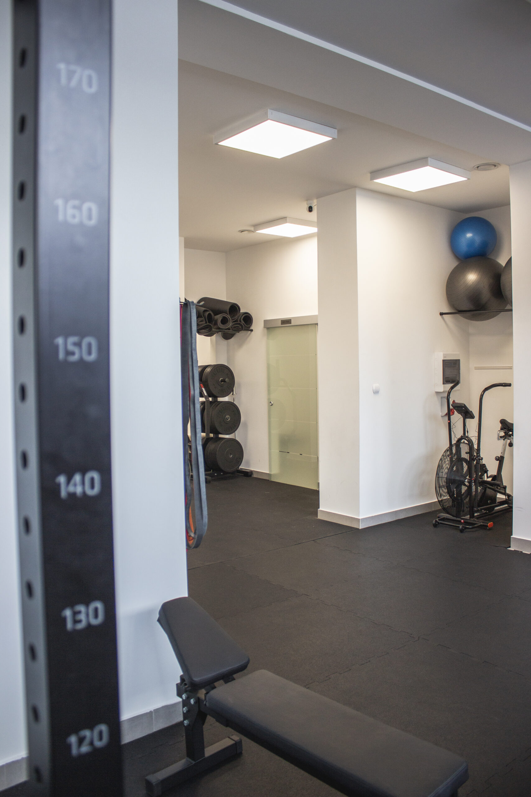 Wewnątrz studia znajduje się kompletny sprzęt niezbędny do treningu. Bramy treningowe z kilkoma stanowiskami pozwalają na różnorodne ćwiczenia. Dostępne są zestawy hantli, obciążenia, taśmy, piłki, piłki lekarskie, trx, skrzynie, maty i wiele innych.